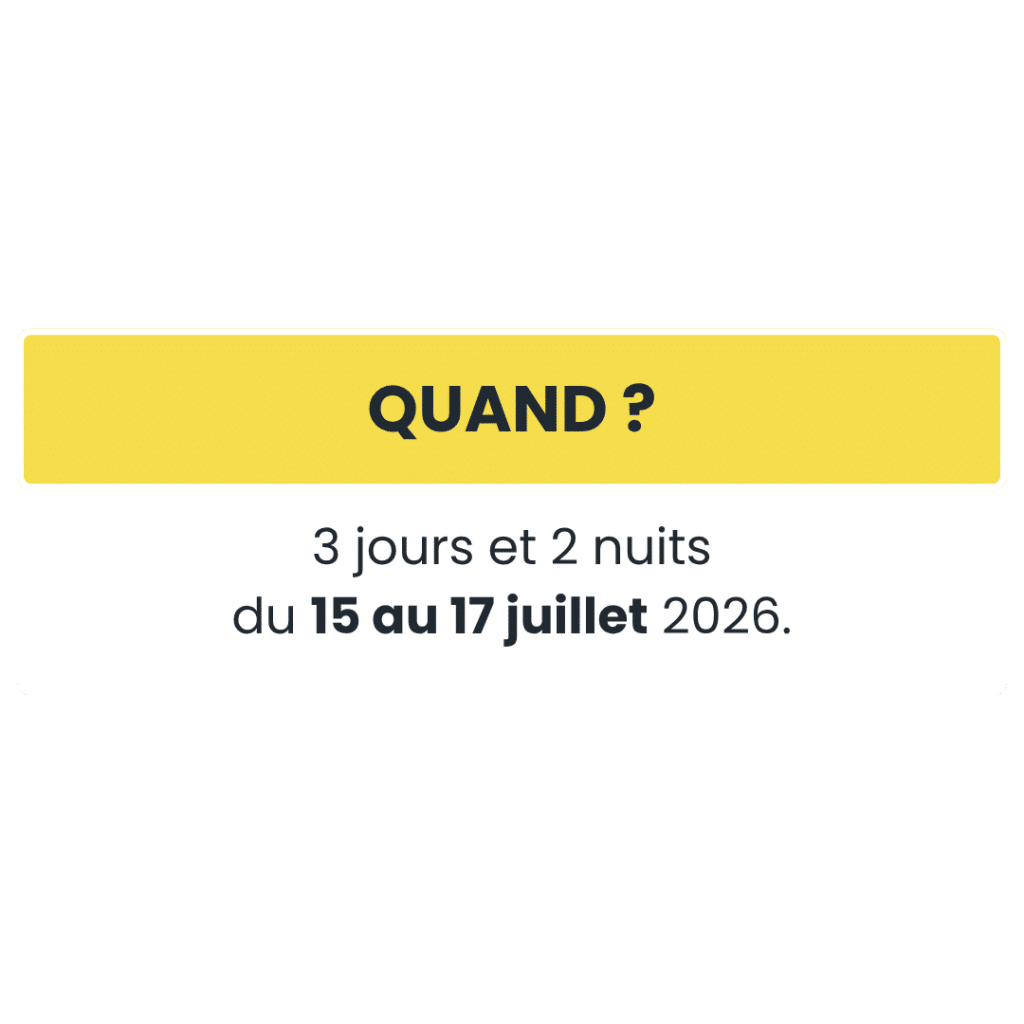 La colo des aventuriers se déroule du 15 au 17 juillet 2026, au format 3 jours / 2 nuits.